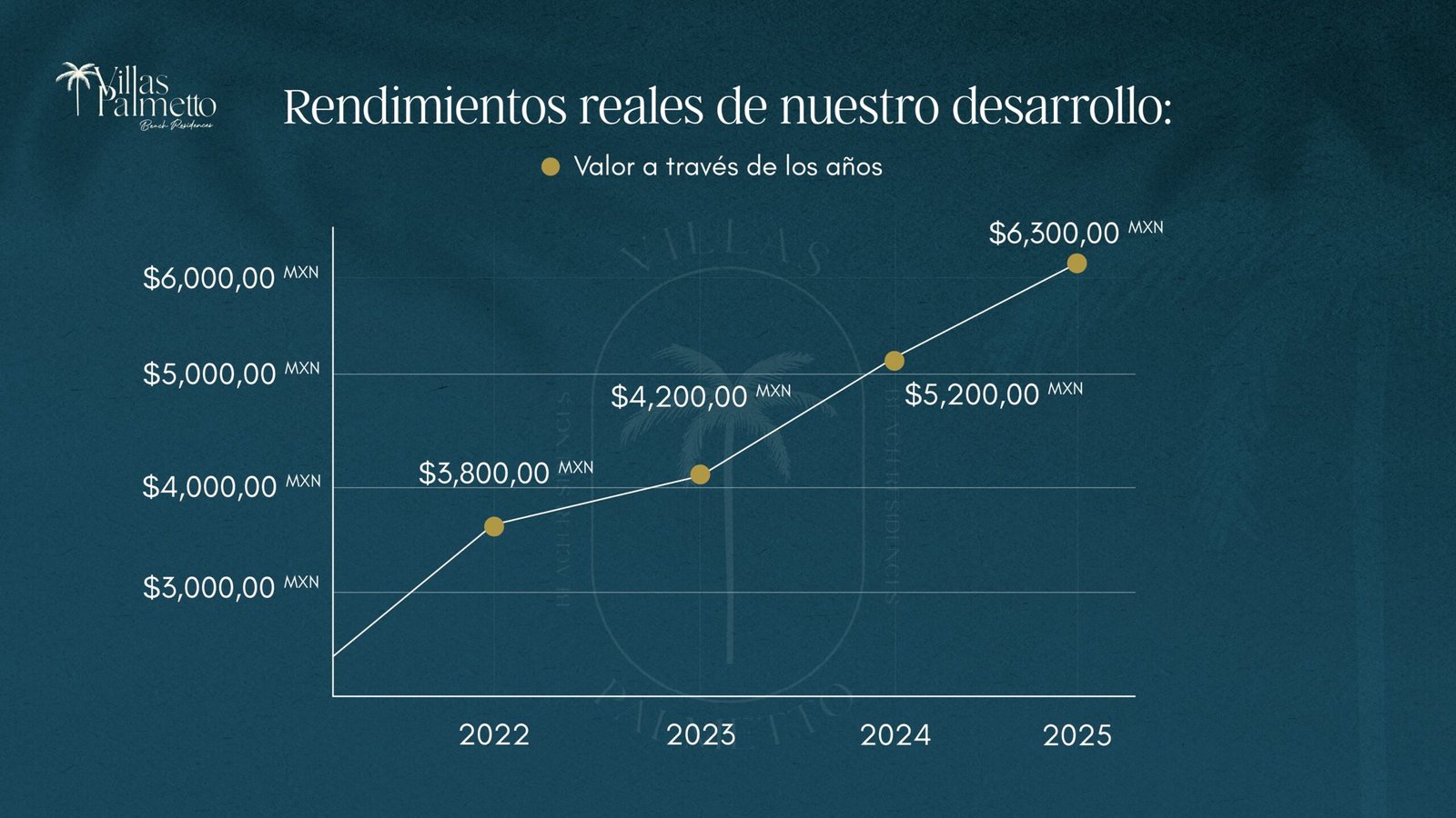 Gracias a la popularidad y belleza de la Costa Yucateca, esta zona privilegiada donde se encuentran las villas ha presentado un aumento constante y sostenido de hasta 65% en tan solo 4 años, es decir, una plusvalía de 16.5% anual.
